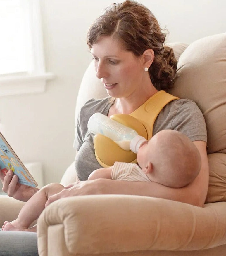 De Bottle Feeder™ is een slank ontworpen hulpmiddel dat geïnspireerd is op de natuurlijke borstvoedingspositie. Deze handige houder draag je om je schouder en borst, waardoor je de borstvoedingservaring op een comfortabele en handenvrije manier kunt nabootsen. Plaats eenvoudigweg de fles van je baby in de houder zodat je kleintje kan genieten van een voeding in een natuurlijke en ontspannen houding .