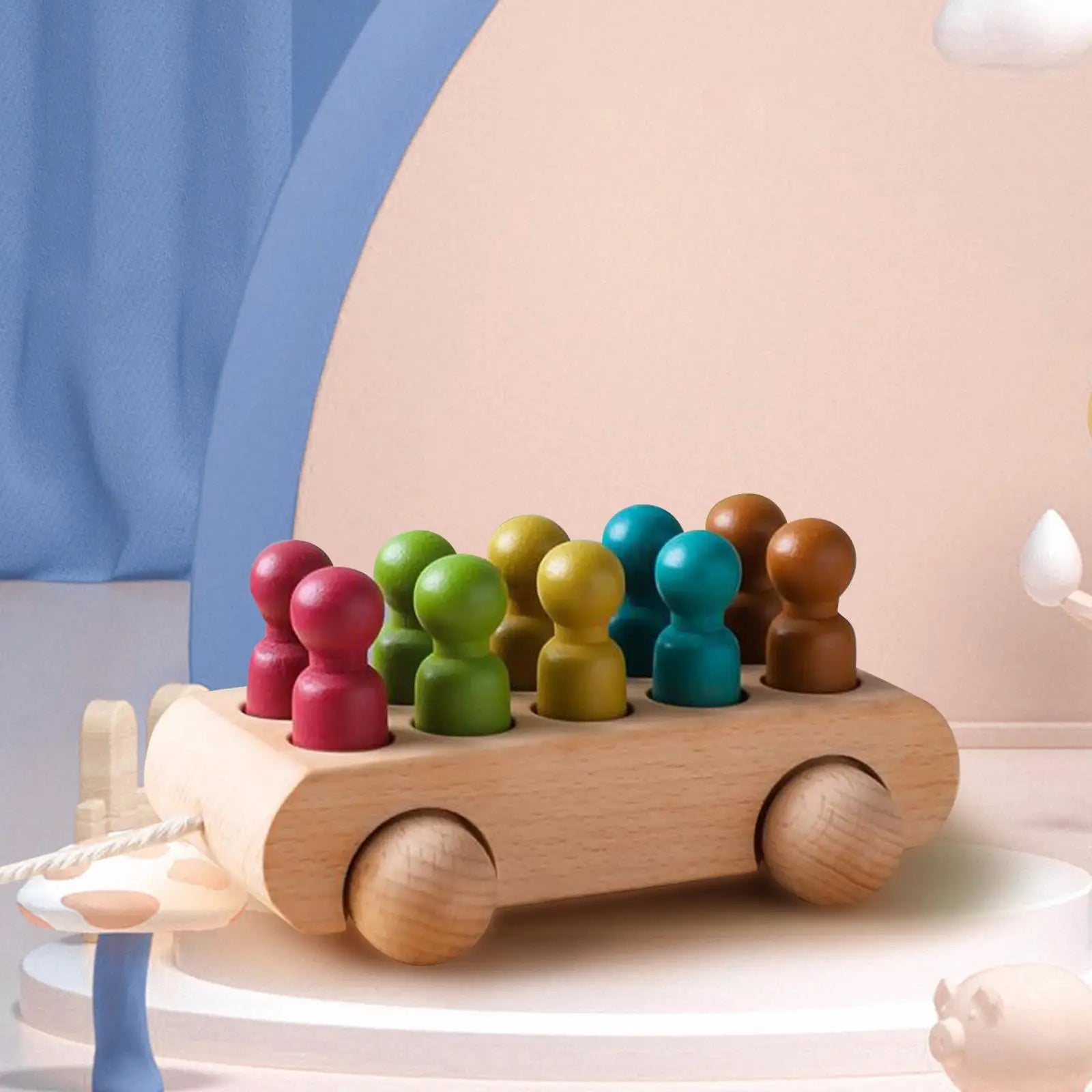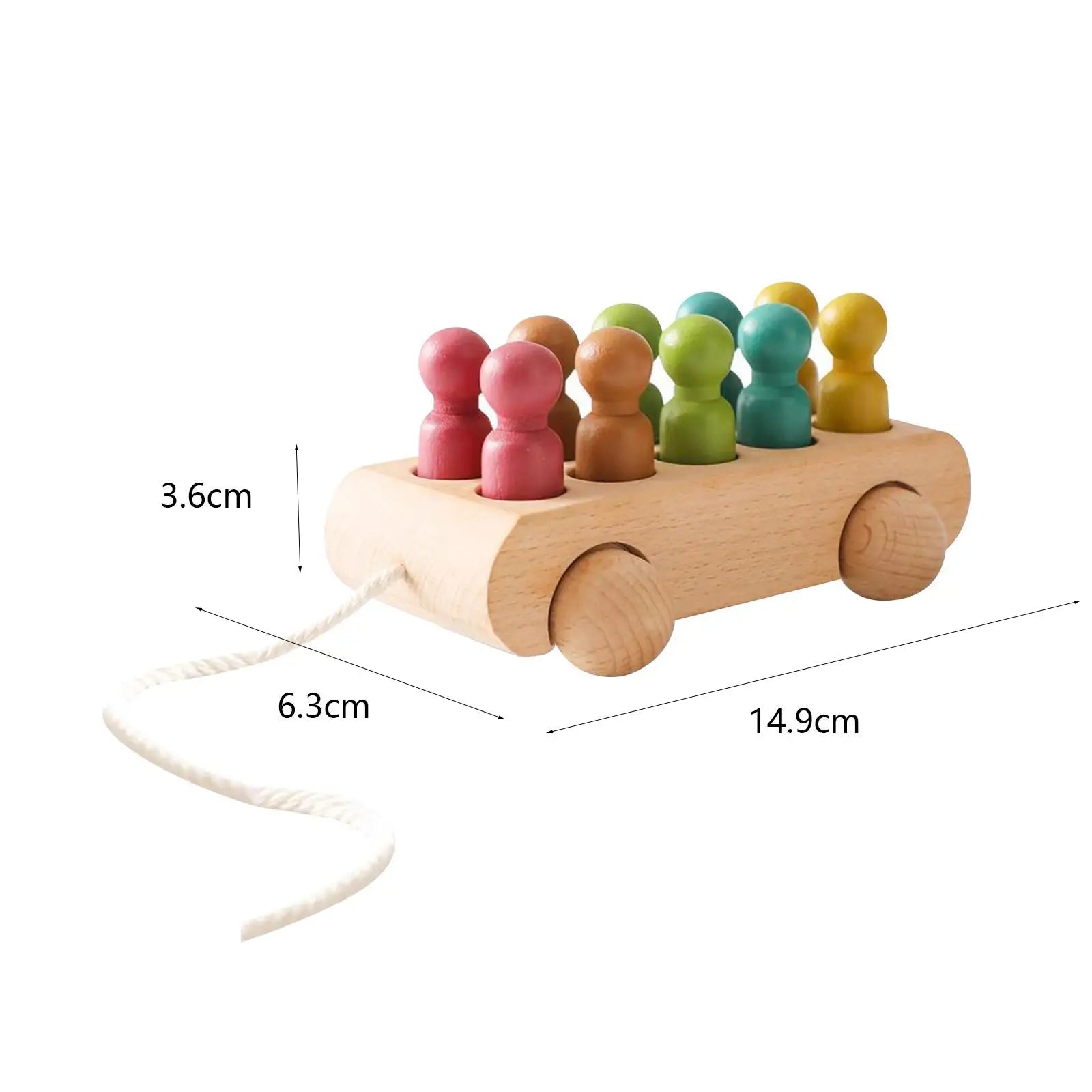 1 × Houten wagenset (inclusief 1 auto, 1 popje en 1 trekkoord)