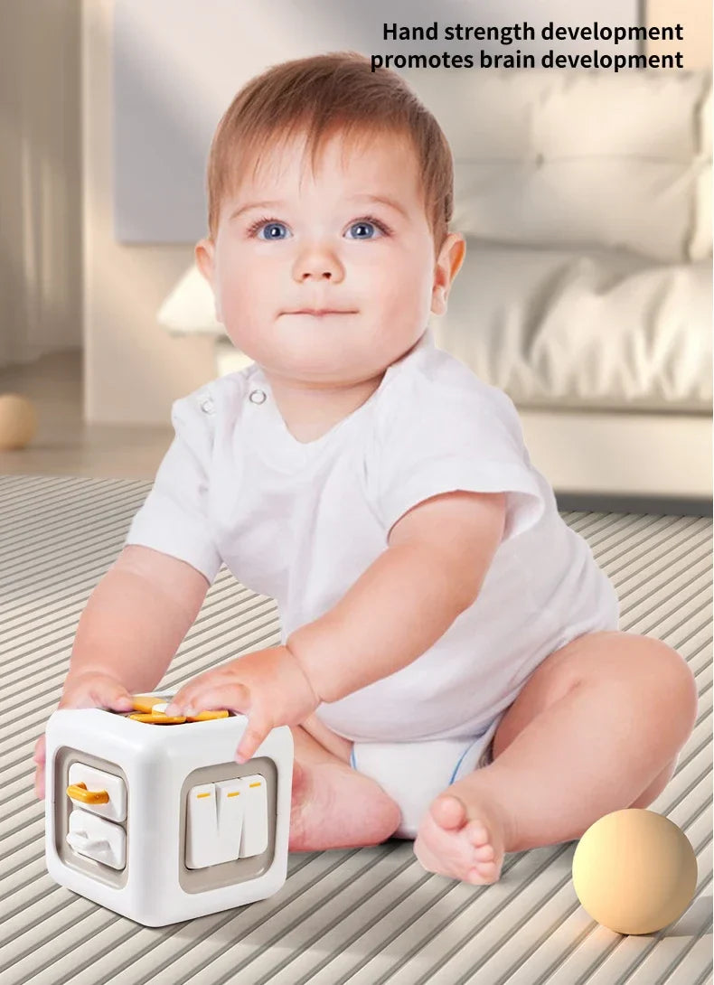 De verschillende texturen en kleuren van de kubus houden kinderen betrokken en een enorme zintuiglijke ontwikkeling. Dit helpt hen langer gefocust te blijven tijdens het spelen en leren.