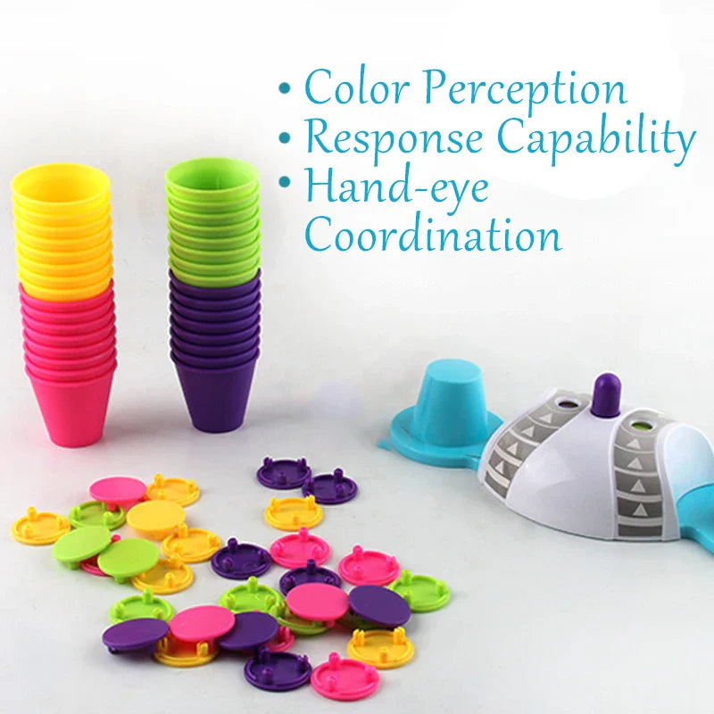 Dit is niet zomaar een spel; het is een race tegen de klok die zowel kinderen als volwassenen aanspreekt! Door kleuren te matchen en snel te stapelen onder tijdsdruk, ontwikkeld je kind spelenderwijs handoog coördinatie en reactievermogen. De eenvoudige opzet en duidelijke regels zorgen voor direct speelplezier voor het hele gezin.