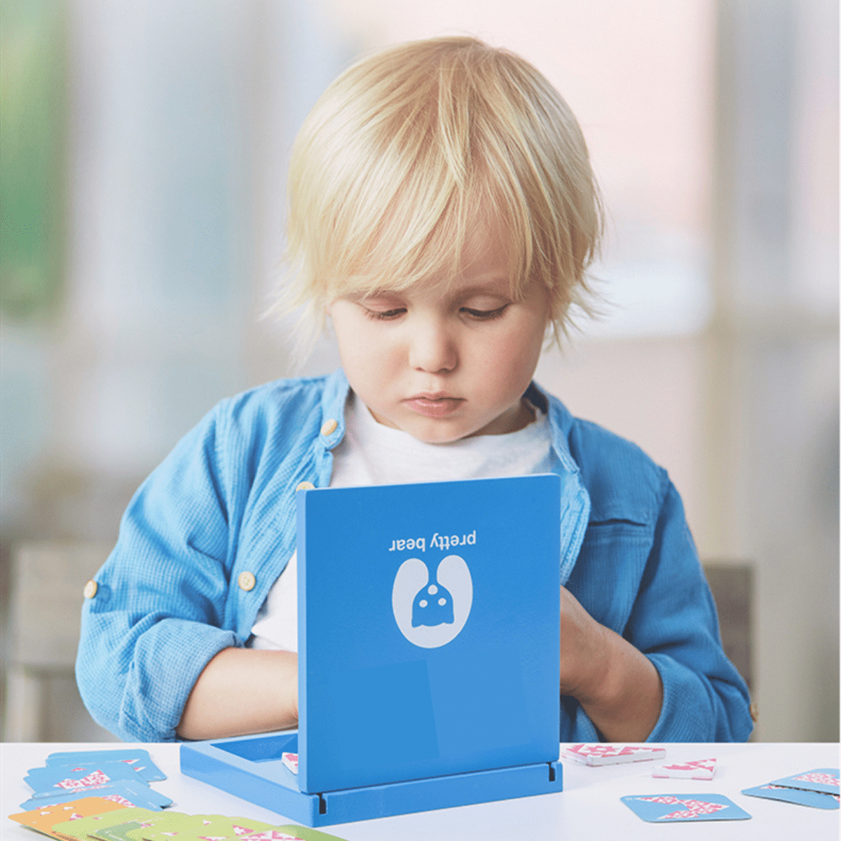Focus op de intellectuele ontwikkeling van jouw hummeltje. Spiegelspel is een uniek spel waarbij de speler de afbeelding op het getrokken kaartje na dient te maken met het gebruik van de spiegel.
